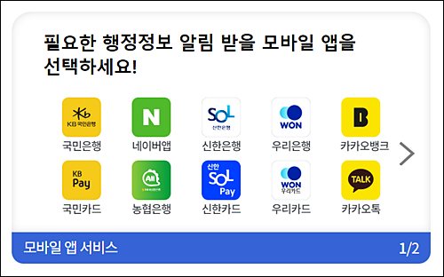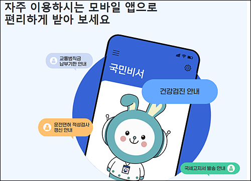 국민비서 앱을 통해 34가지 알림 서비스와 23개 중앙부처의 챗봇 상담 서비스를 이용할 수 있습니다.