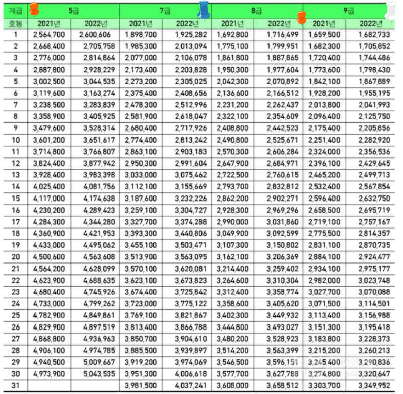 2022년 군무원 봉급표 호봉표 예상금액