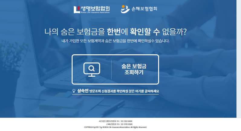 내보험 찾아줌 사이트에 생명보험, 손해보험 상품의 가입내역을 확인할 수 있으며 365일 24시간 확인할 수 있는 시스템입니다. 2017년부터 숨은 보험금 찾아주기 캠페인이 진행되고 있지만 아직 찾아가지 않은 보험금이 많습니다. 조회해 보시고 숨은 보험금을 찾아보시기 바랍니다.