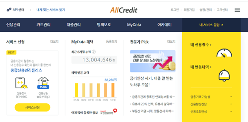 올 크레디트에서는 신용등급 무료조회뿐만 아니라 카드정보, 대출정보, 시뮬레이터, 신용향상 코칭, 스마으리포트, 맞춤대출 찾기등이 제공됩니다.