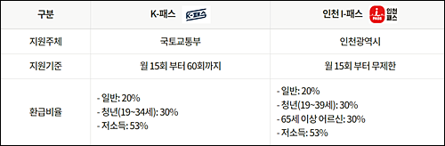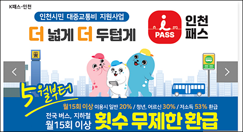 기존 K-패스 대비 노인 할인율을 단계적으로 50%까지 확대할 계획입니다.인천 아이패스 사용자는 대중교통 이용 시 교통비를 무제한으로 환급받을 수 있습니다.