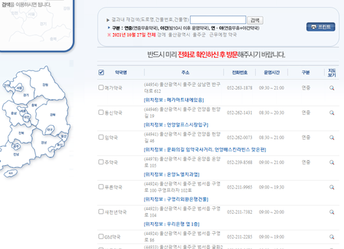 일요일 문 여는 곳 약국도 위의 같은 방법으로 검색하시면 됩니다. 주소 입력 후 정렬 방법을 운영 순으로 하시면 됩니다. 운영 여부 순에서 일요일 약국 문 여는 곳을 확인할 수 있습니다.