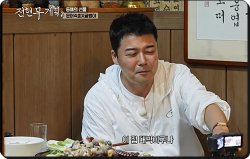 삼척 아파트 상가 1층, 간판도 제대로 보이지 않는 작은 동네 선술집. 그런데 그 안에서 나온 문어숙회 한 점에 전현무가 젤리보다 더 부드럽다고 탄성을 질렀습니다. 골뱅이를 맛본 곽튜브는 살면서 먹은 골뱅이 중 제일 맛있다는 말을 남겼습니다.