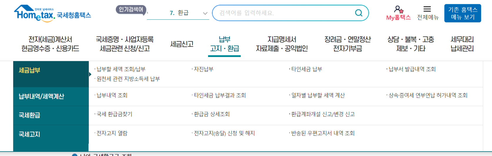 국세청 홈택스 종합 소득세 신고 바로가기