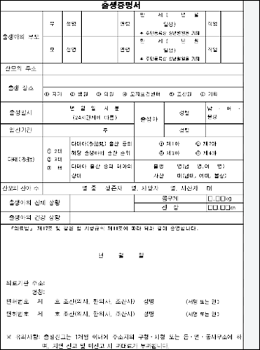 출생신고서는 전국적으로 동일한 양식으로 작성되며 담당 간호사 또는 병원 관계자가 확인을 합니다.