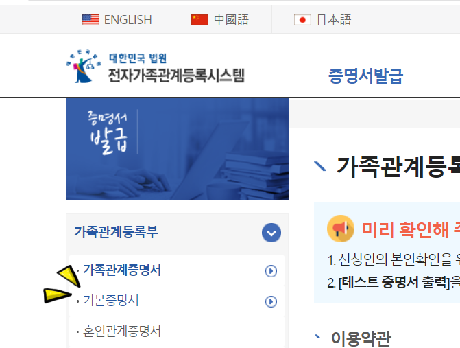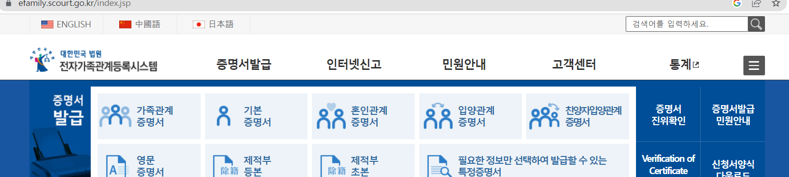 1. 대법원 전자가족 관계 등록시스템에서 발급