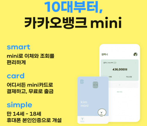 카카오 뱅크 미니카드는 만 14세 이상이면 18세 이하 청소년만 이용이 가능합니다. 카카오 뱅크 미니는 10대를 위해 신규 서비스입니다. 기존 카카오 앱에서 휴대폰 인증으로 이용할 수 있습니다. 카카오 뱅크 미니를 사용하면 실시간 잔액 확인이 가능하고 간편한 이체도 할 수 있습니다
