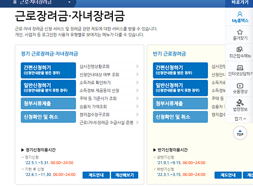 2022 근로장려금 신청기간:5월 1일~5월 31일 /반기 신청기간:매년 3월. 9월/추가 신청기간:11월 30일까지