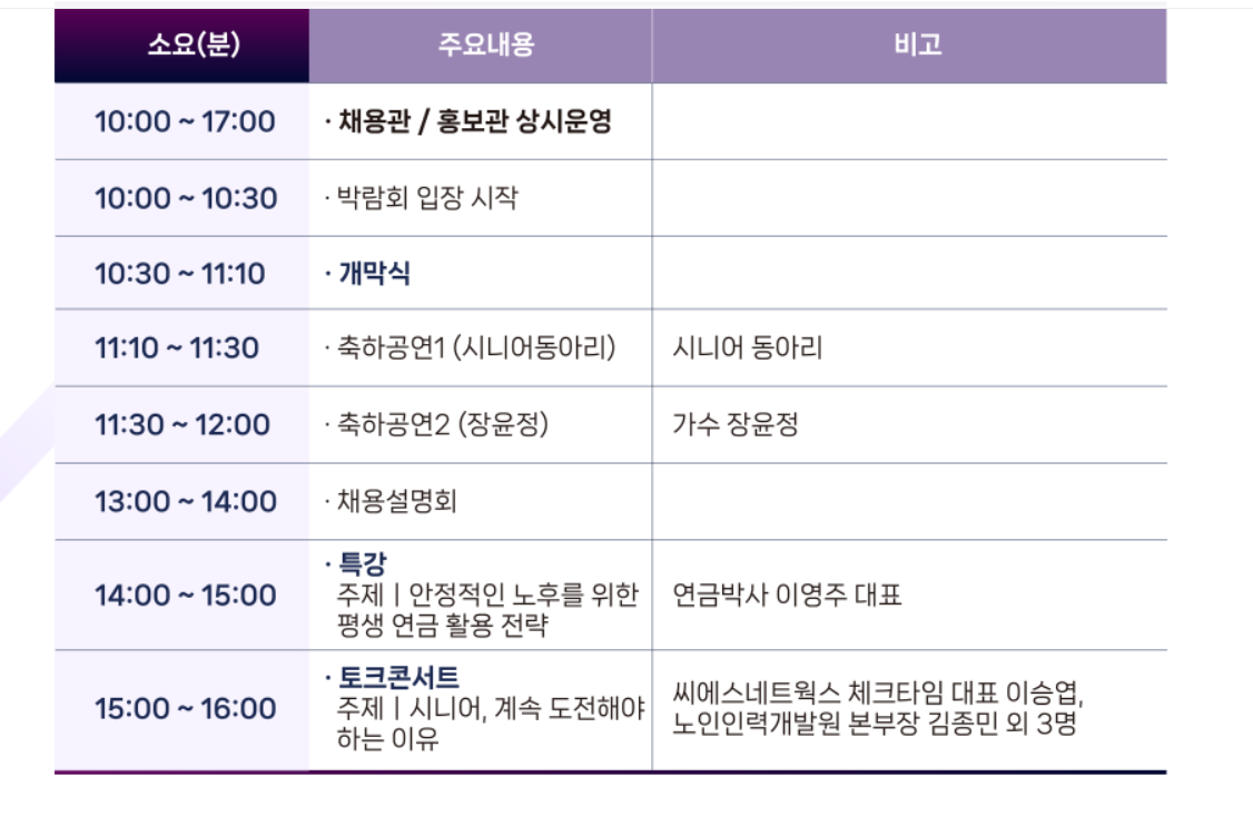 5070 일자리 박람회 박람회 주요 프로그램 및 참여 방법