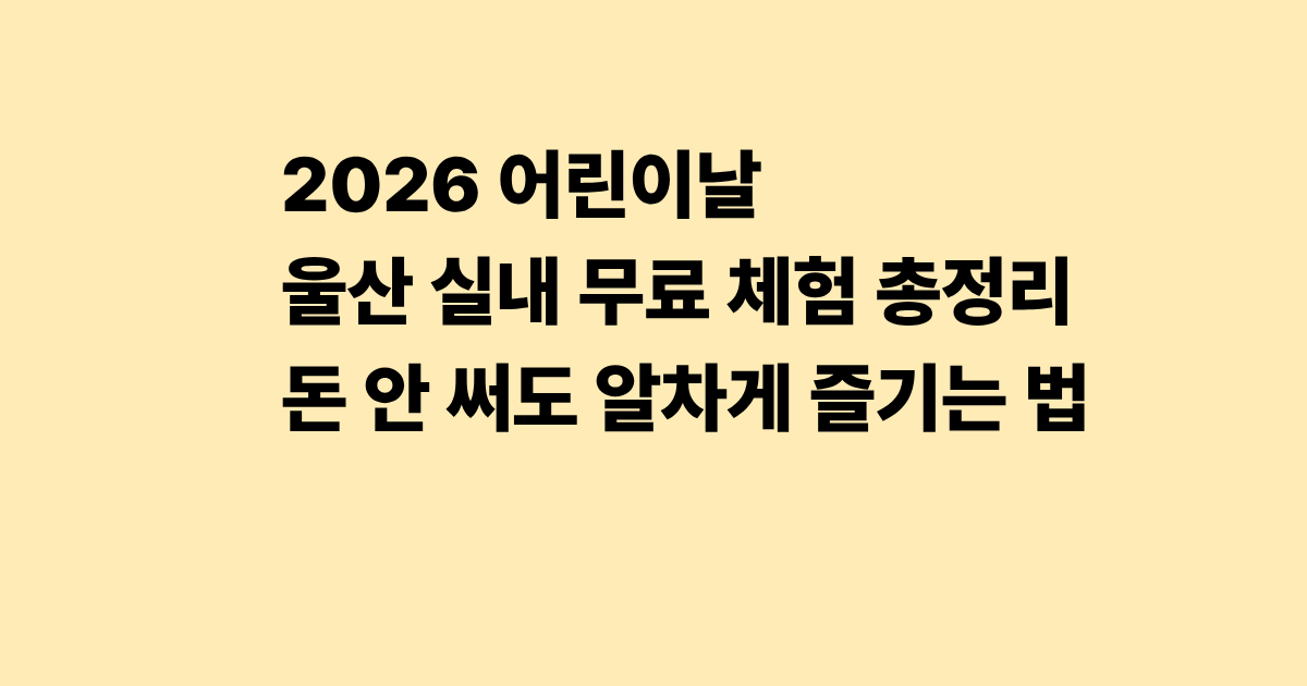 2026 어린이날 울산 실내 무료 체험 총정리 — 돈 안 써도 알차게 즐기는 법